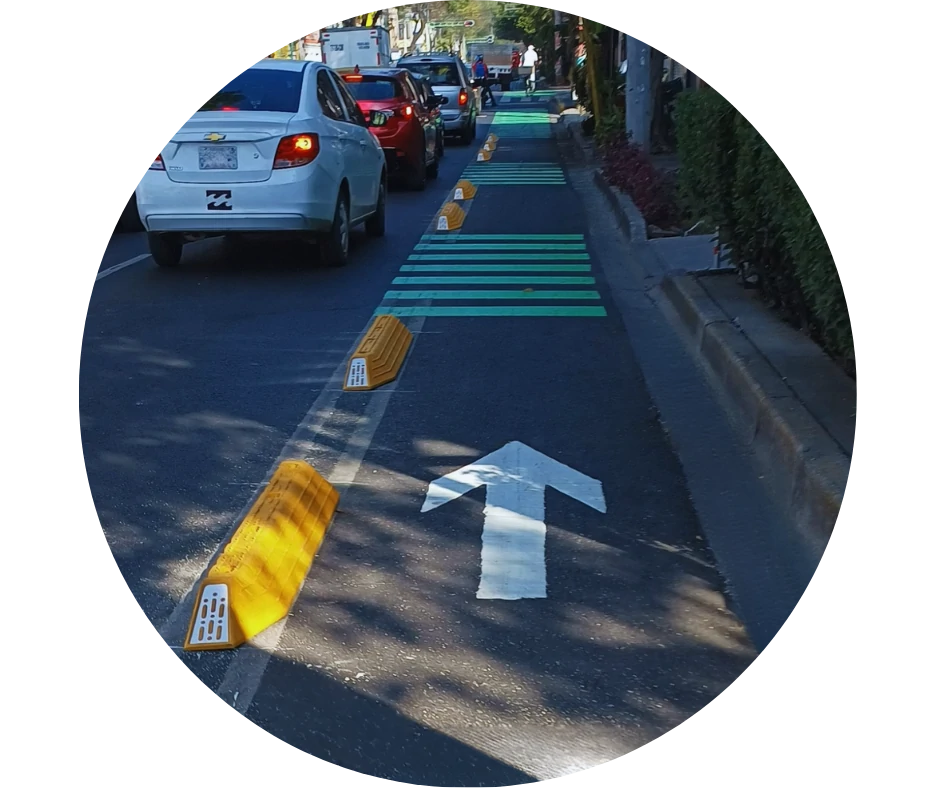 Con sus 6 Reflejantes laterales estratégicamente Angulados a 45°, el Canalizador H7 delimita las ciclovías y protege a los ciclistas.